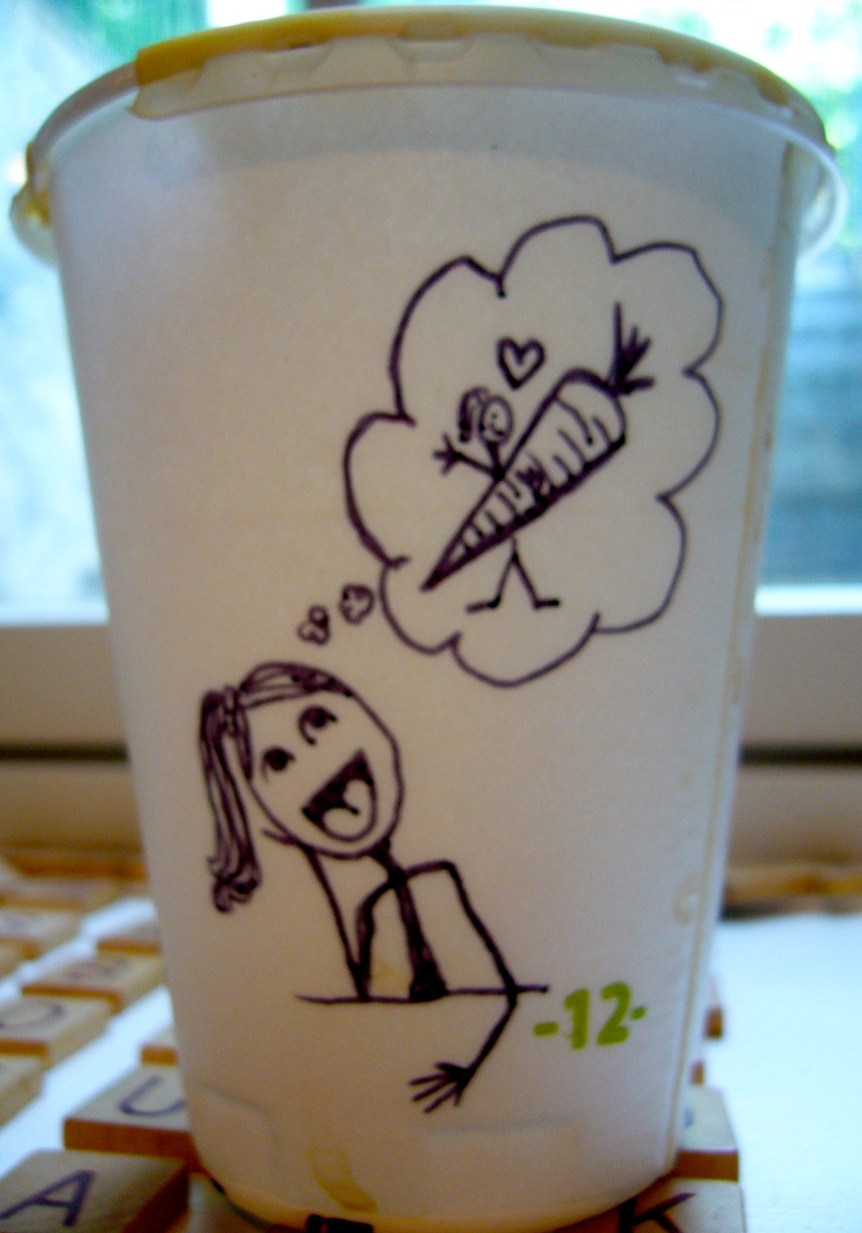 Thats right…COLD TURKEY… even resisted the baby carrot Pete offered me at lunch. *sigh a sweet daydream will get me through. Thank goodness this is a short week or I may go Trainspotting on you all –> “vitamin A jitters,” the “crunchy sweats,” and creepy hallucinations probably involving bugs bunny.
