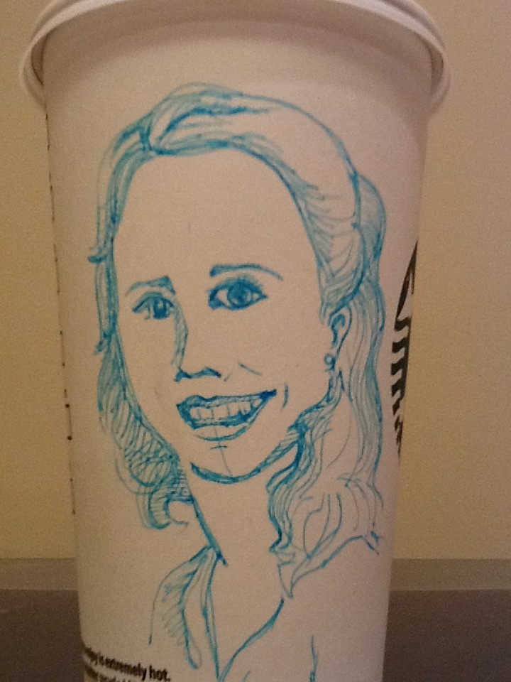I drew my cup today from picture my dad took of my mom when they were dating. My mom always looked so beautiful and happy (even before I knew her : ) )