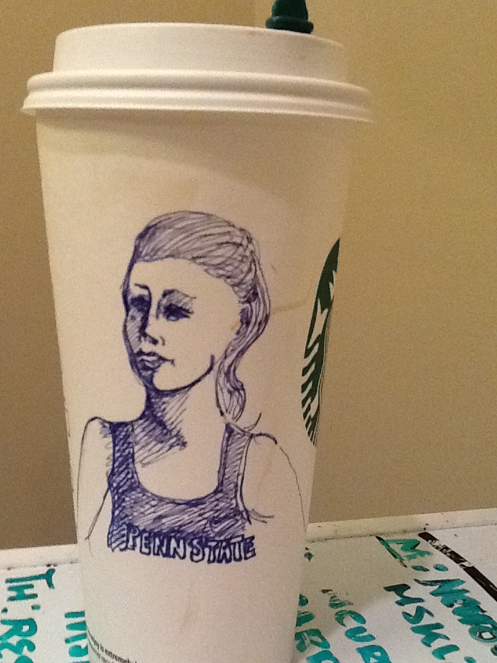 Ok, so in my bleary eyed, mid-term crazed state I appear unable to make a good portait of my classmate Cait. However, throw a PENN STATE jersey in there and you’ve got the fiercest nitany lion I know….so, I’ll just have to try a little harder on her b-day to make something more representative of her awesomeness.