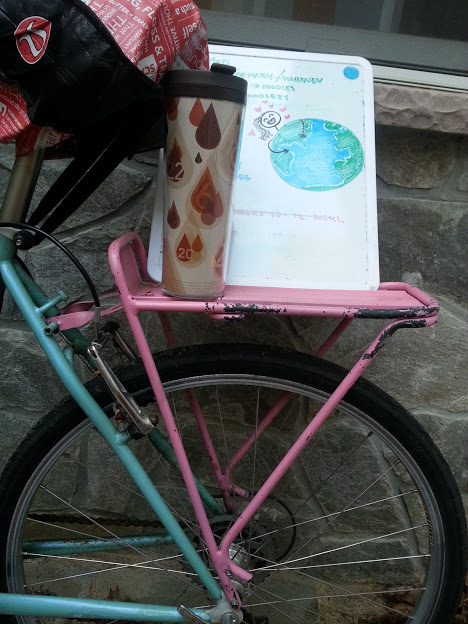 In celebration of our most glorious planet, I went totally green today. Bike commute to school, reusable cup, and dry erase drawings (Ignore the epic to-do list on the left) and I pledge (as I hope you all will too) to make a change that goes beyond just today.