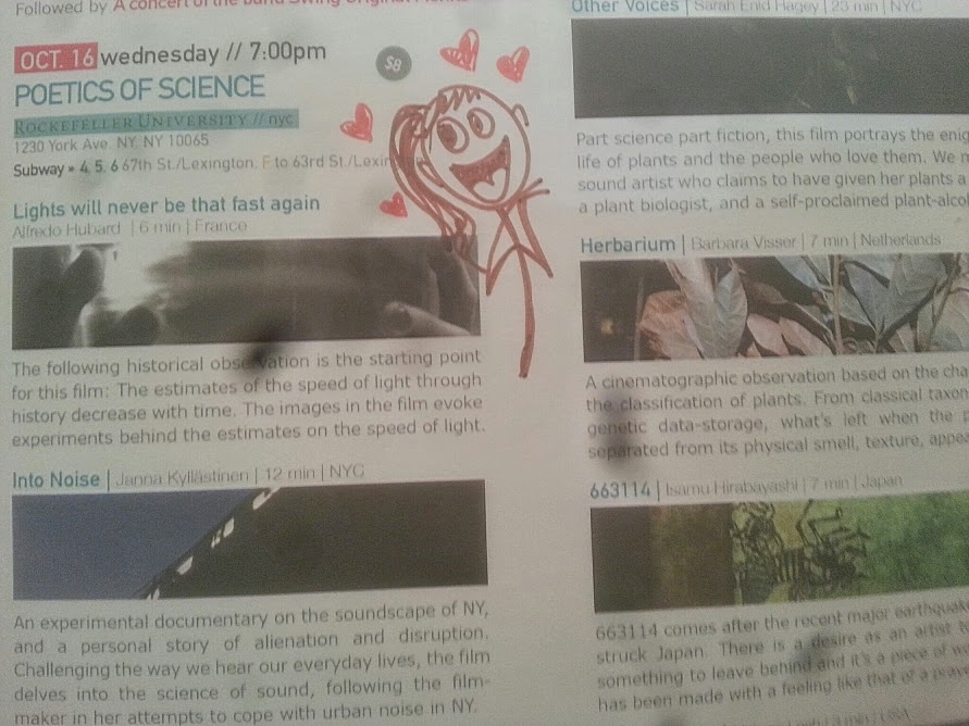 Seven days of beautiful and inspiring work flickering before my eyes on the big screen! From ecology to neurology… biology and fantastically lovely art, the Imagine Science Film Festival expanded my understanding of what it means to be a scientist and artists. While I (sadly) couldn’t make it to every session, I found myself engaged and fascinated thinking about how to visualize data and convey ideas. It was interesting to consider the different ways these artists and scientists tried to convey their message, sometimes it was fictional with a strong narrative and other times, it just left me with a feeling. Effective communication is perhaps one of the most crucial aspect of discovery and creation…. after all, I think beautiful things should be shared…. and this week I was blown away by the beauty of science and discovery.