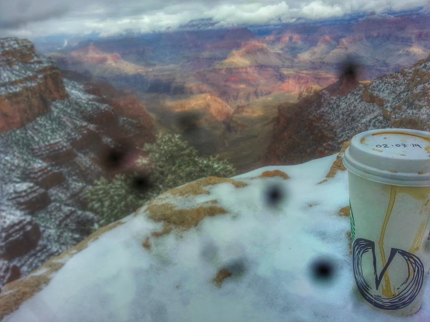 It was dark but Arizona was covered in snow that reflected any hint of light. Driving out to the Canyon was slow and deliberate, the plows were not awake yet. It took almost 2 hours to cover about 45miles but it was so extraordinarily beautiful and isolated. I think I spoke 5 words all day.