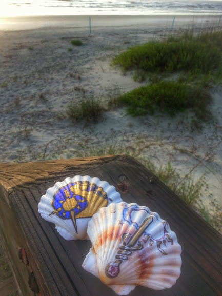 Each day in May, instead of a coffee cup, I will be painting a shell as a fundraising effort for The American Cancer Society. Interested in owning one of these shells? Be the first to post a comment on my blog each day with a donation pledge and I’ll mail you the shell (or hand deliver with a hug if you live close or someplace interesting 🙂 )