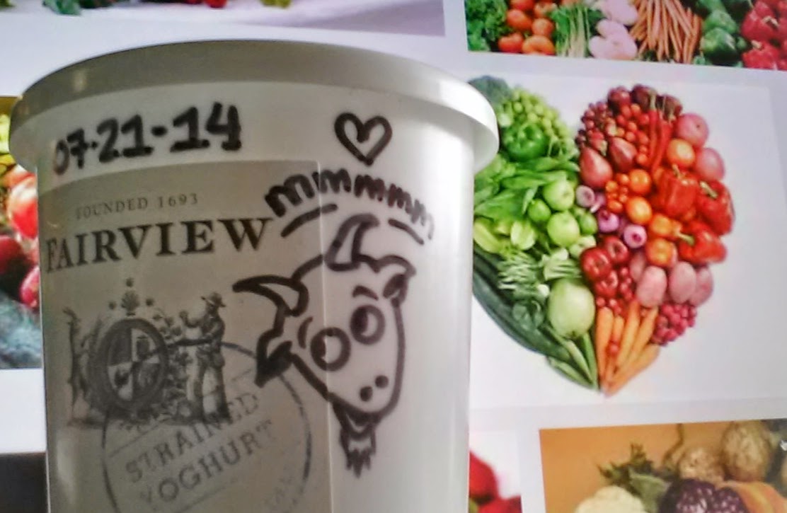 Today’s cup brought to you by delicious REAL food from South Africa. Fairview goat farm, unprocessed and unsweetened goat’s milk yoghurt…mmmmm